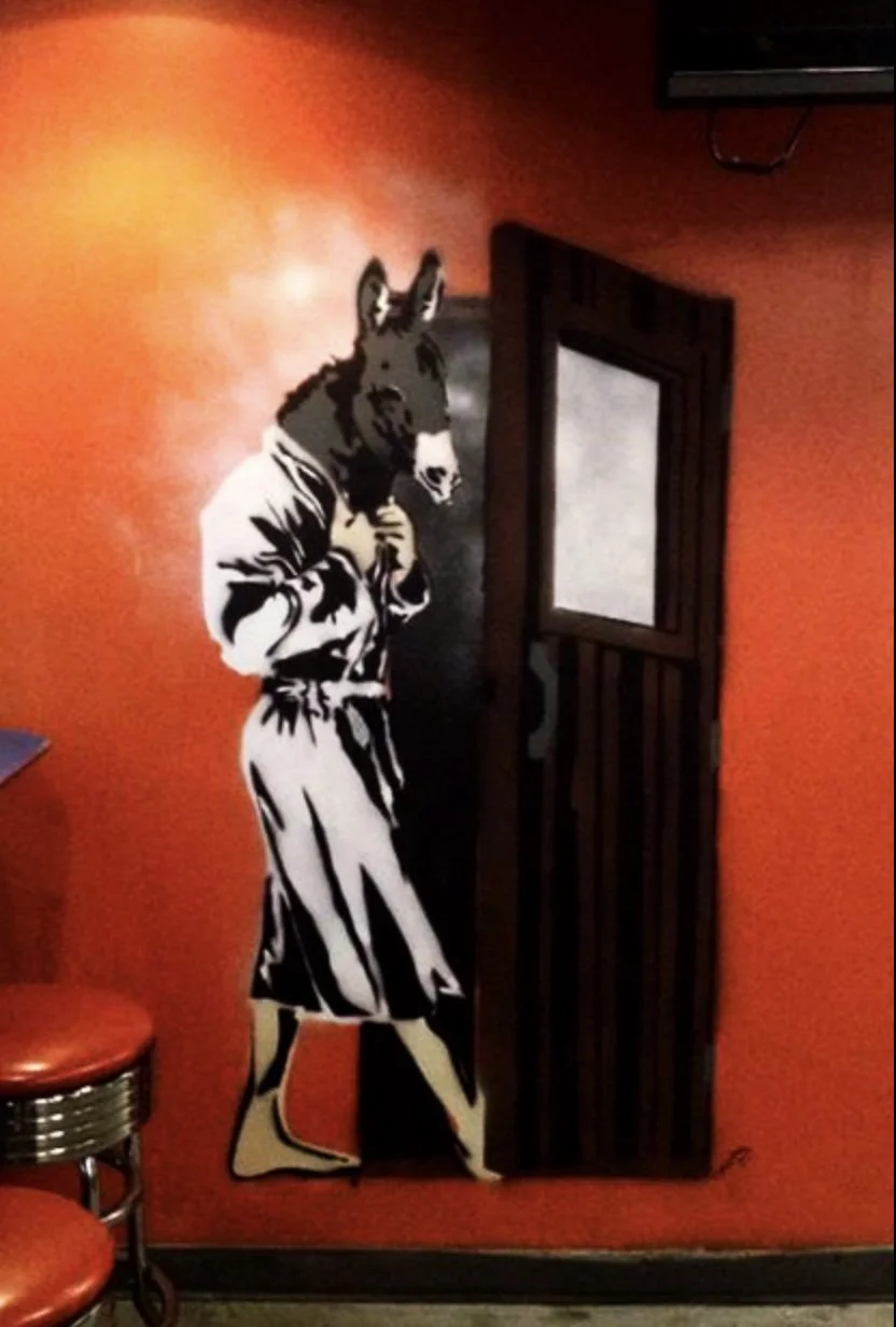 Banners for a restaurant I used to work for and a stencil done on site. The concept of the restaurant was making burritos with steam (did you get it?) (Vancouver - Canada)